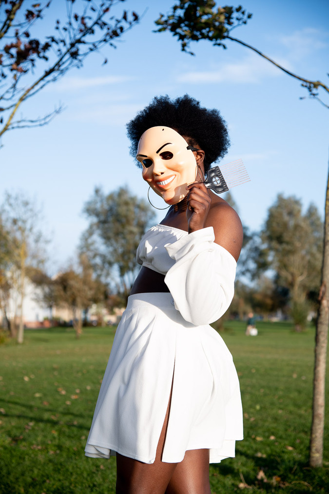 This project is about the black woman and her problematic mane. It speaks to challenging 'universal' standards of beauty by performing negative and positive representations of black femininity against the backdrop of Irish suburban life.